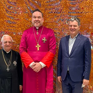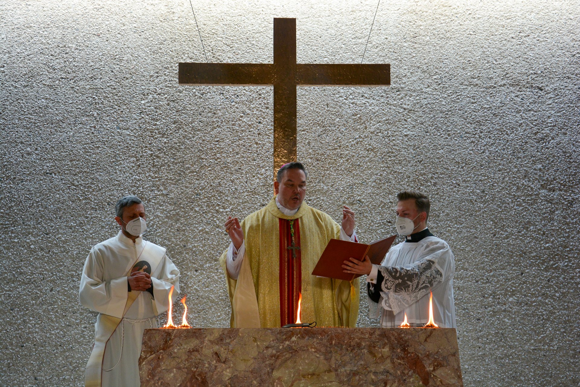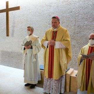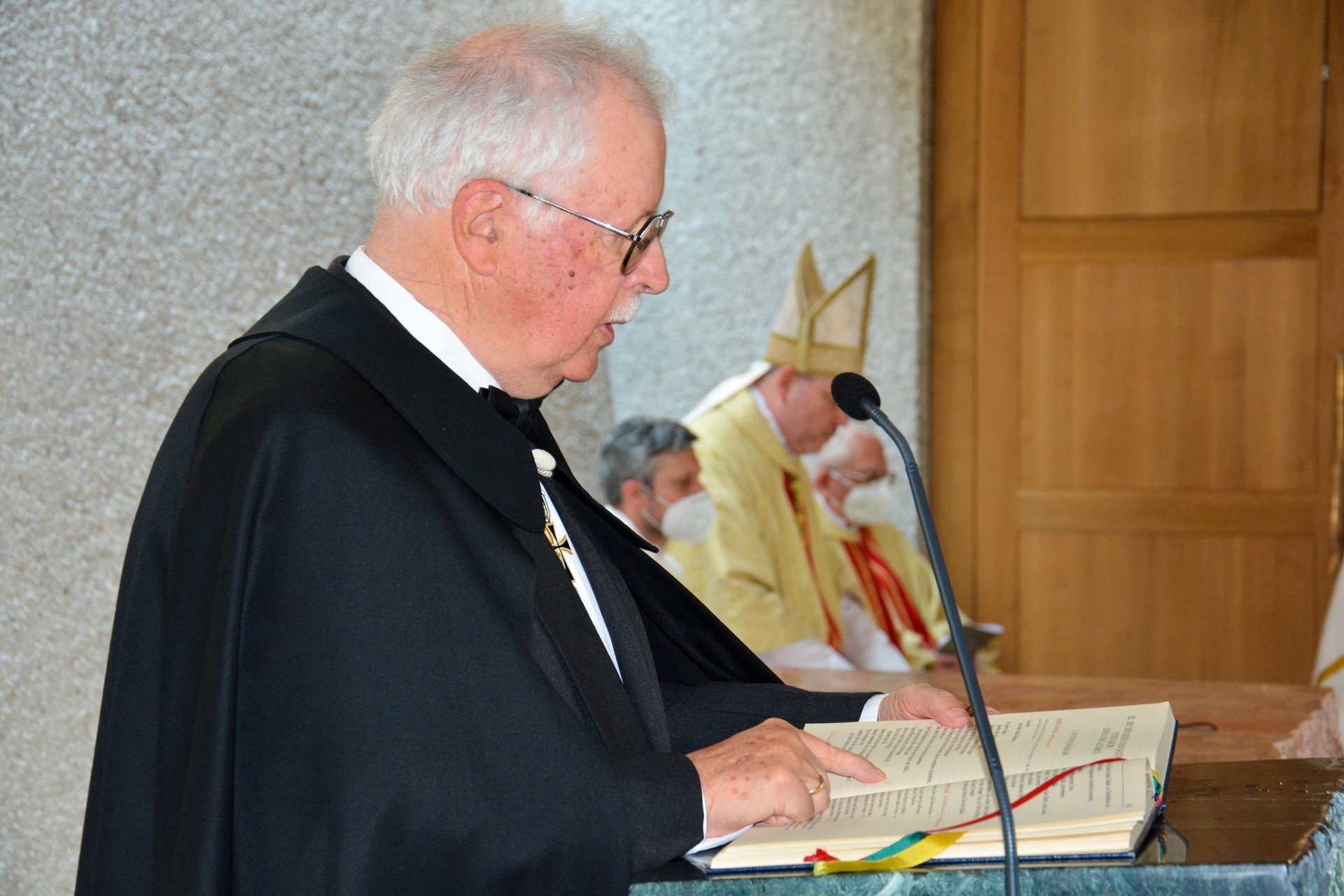 Nach dem Reinigen wurde der Altar für die Eucharistiefeier gedeckt. Althochmeister P. Prior Arnold Wieland und Dekan Hans Pamer konzelebrierten. Beim musikalisch gestalteten Pontifikalamt mit dabei waren Zeremoniar Florian Weber (persönlicher Sekretär des Hochmeisters), Pater Christof und Diakon Thomas Schwarz.