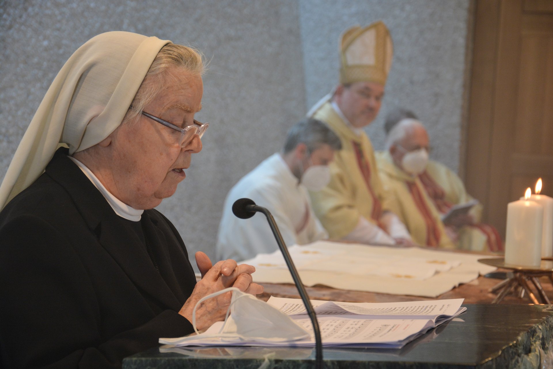 Generalabt P. Frank Bayard segnete den Ambo und den Tabernakel und entzündete nach dem Einsetzen des Allerheiligsten das Ewige Licht. Beeindruckend war die Weihe des Marmoraltars, in dem S.E. der Hochmeister Reliquien der hl. Karmelitin und Mystikerin Maria Magdalena von Pazzi und des seligen Fürstbischofs Johann Nepomuk von Tschiderer einsetzte. Zudem besprengte der Abt den Altar mit Weihwasser, salbte ihn mit Chrisam und verbrannte darauf Weihrauch.